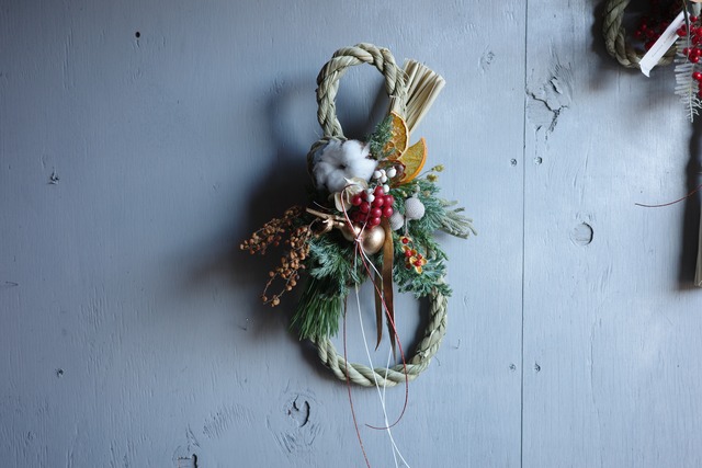 新年新たな気持ちで制作した冬の新作です。 高さ約21.5cm 横幅約15cm 天然素材を多く使用しています。 なるべく風通しよく、また陽のあたらない室内に飾ってください。 ・別途送料がかかります。 ・配送日指定がない場合は1週間以内に発送いたします。 ※経年変化で色や質感の変化がありますことご了承ください。 ※また色褪せや劣化を早めてしまいますので、 直射日光・高温多湿をさせてお飾りください。