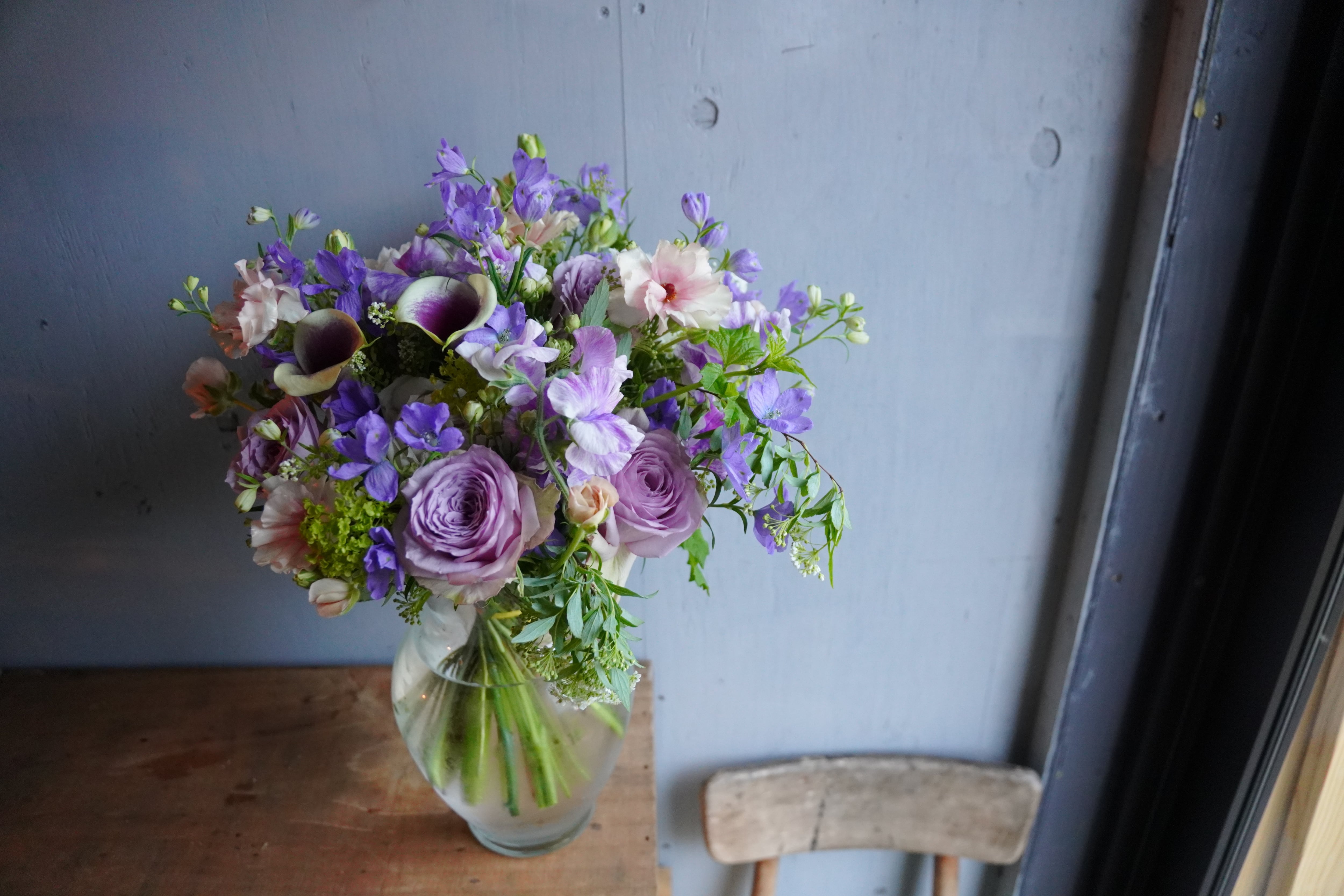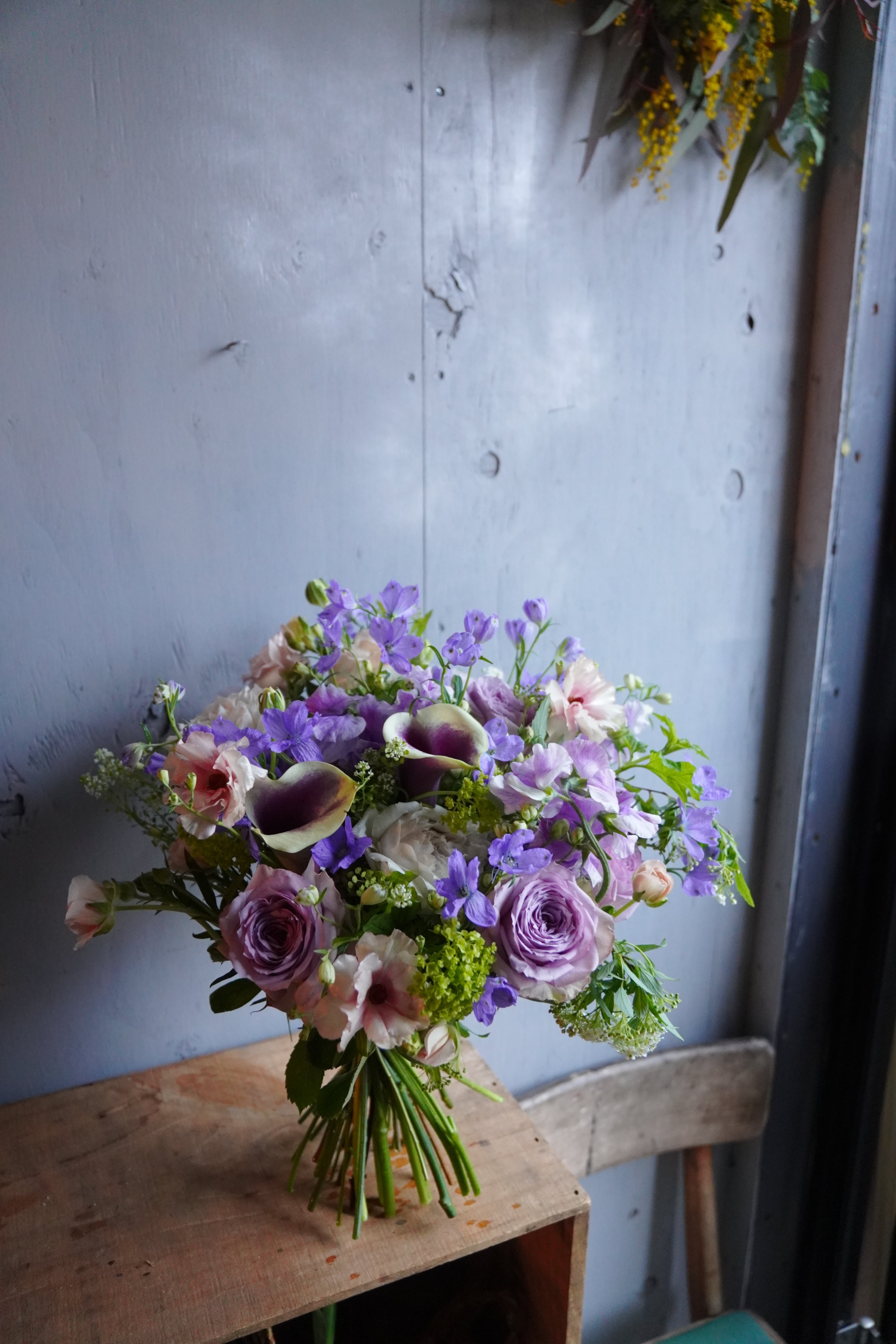 大好きなお花、色合いをまとめて大きく、丁寧に束ねました。