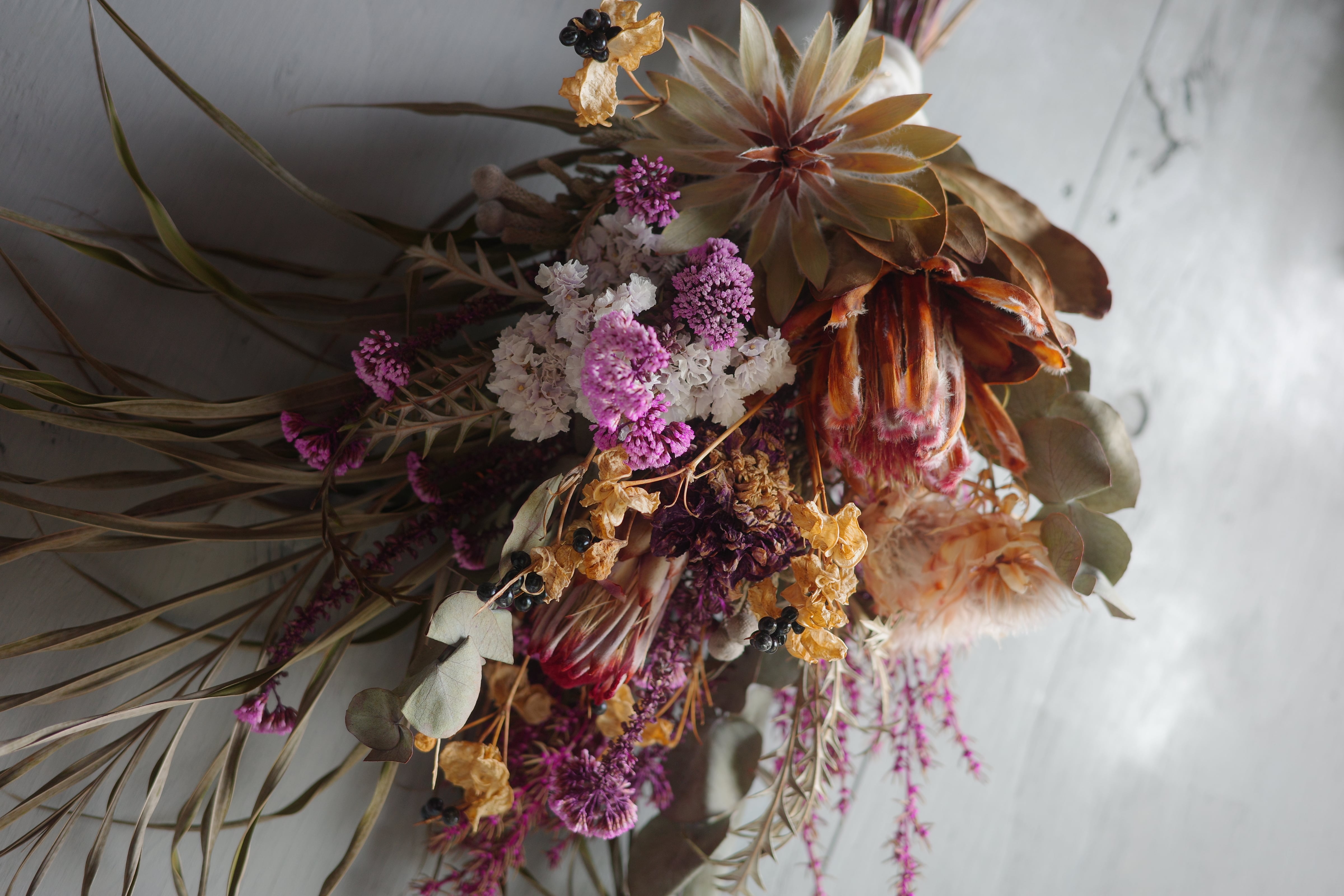 すべてドライフラワーとして乾燥させてから制作しています。
