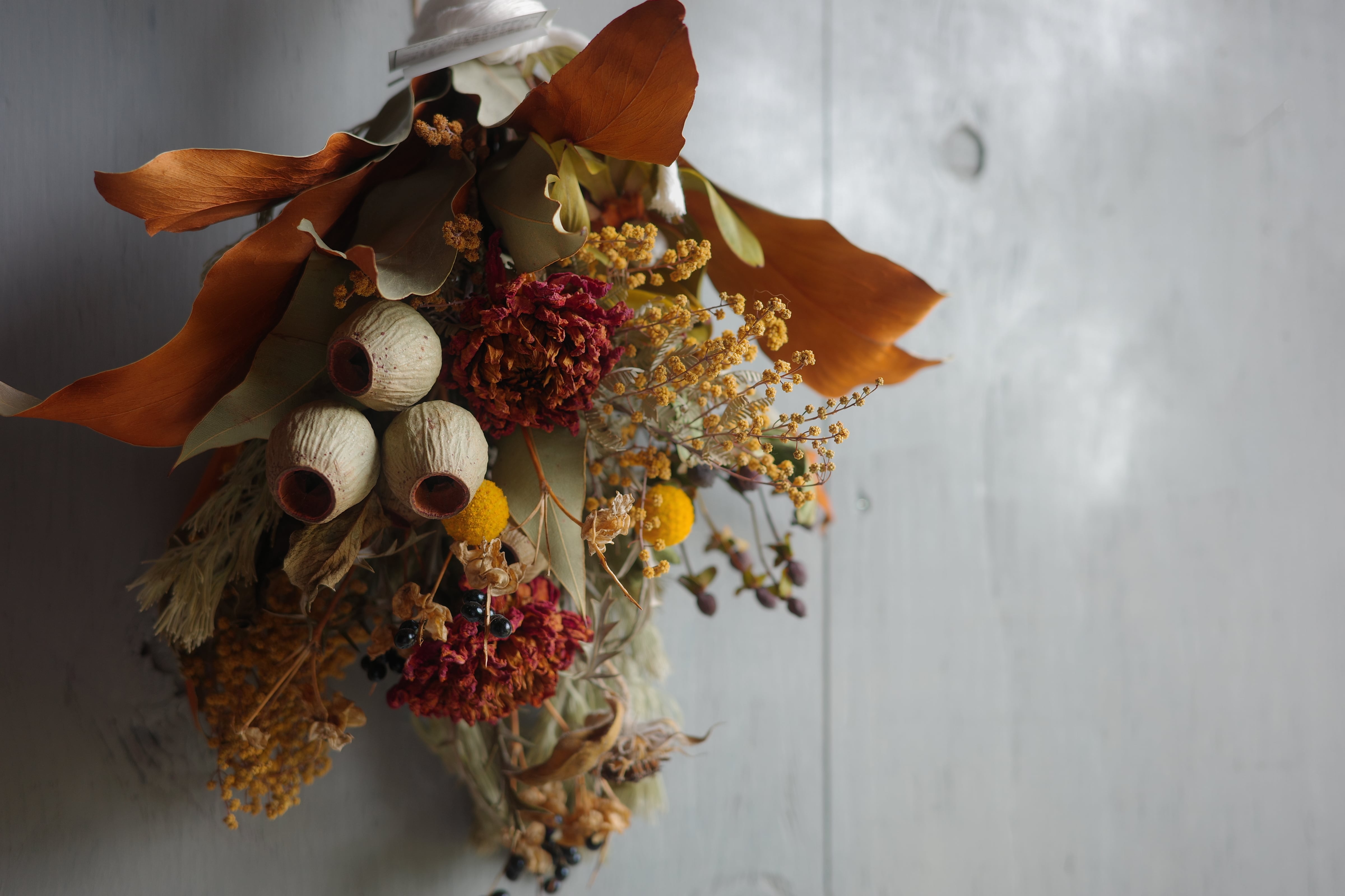 夏と秋の真ん中、長月初旬にたばねたsunnyのスワッグです。