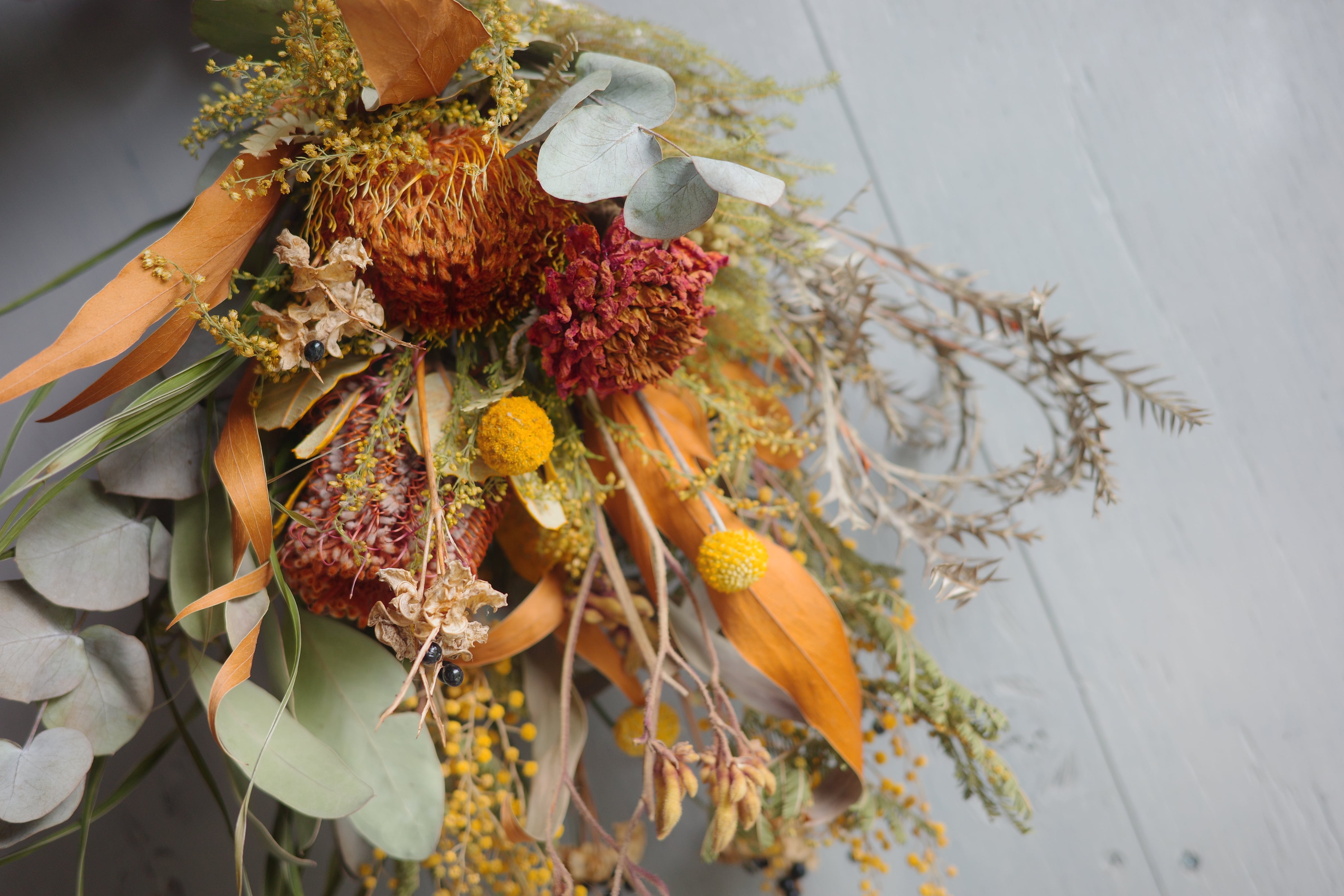 夏と秋の真ん中、長月初旬にたばねたsunnyのスワッグです。