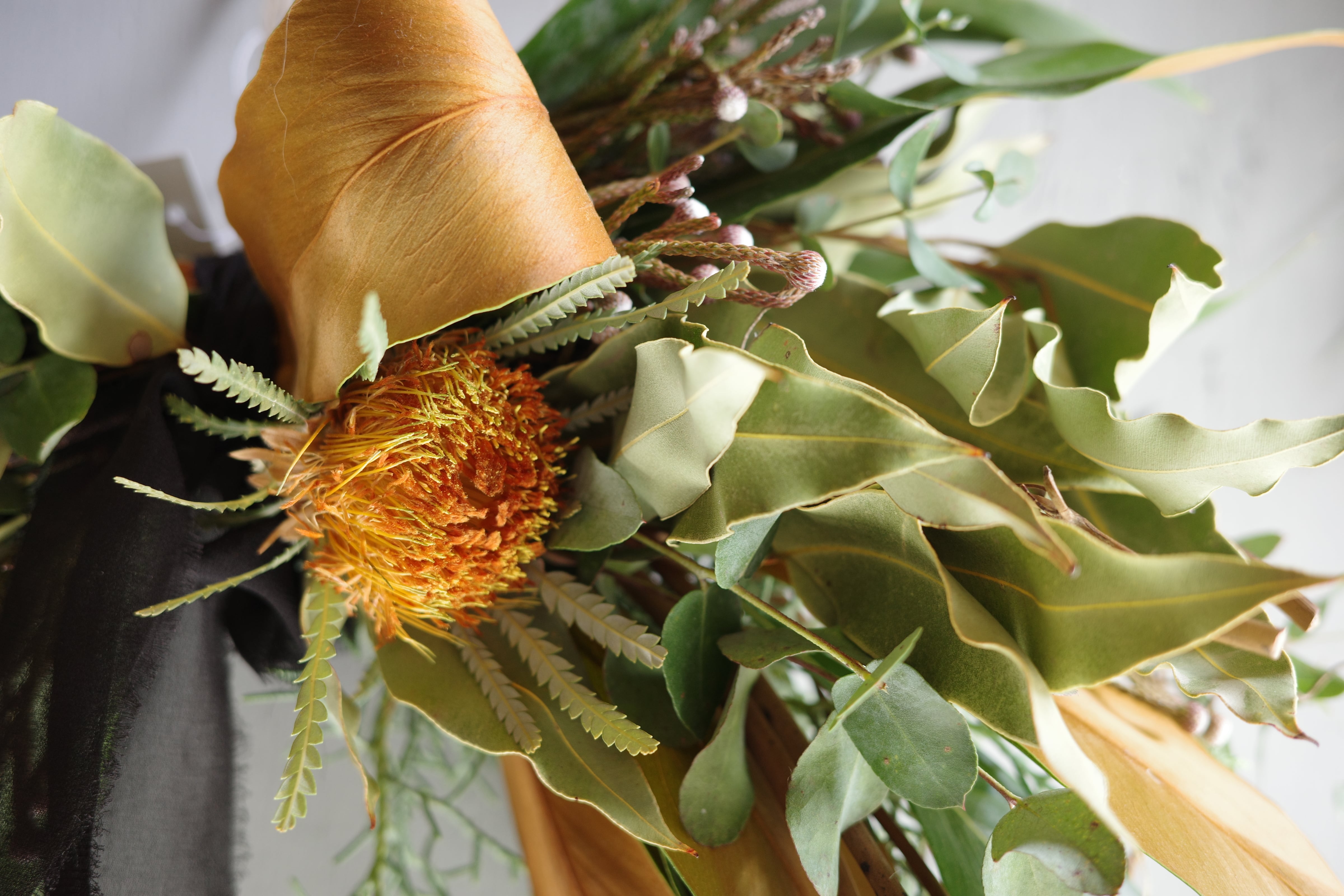 なるべく風通しよく、また陽のあたらない室内に飾ってください。