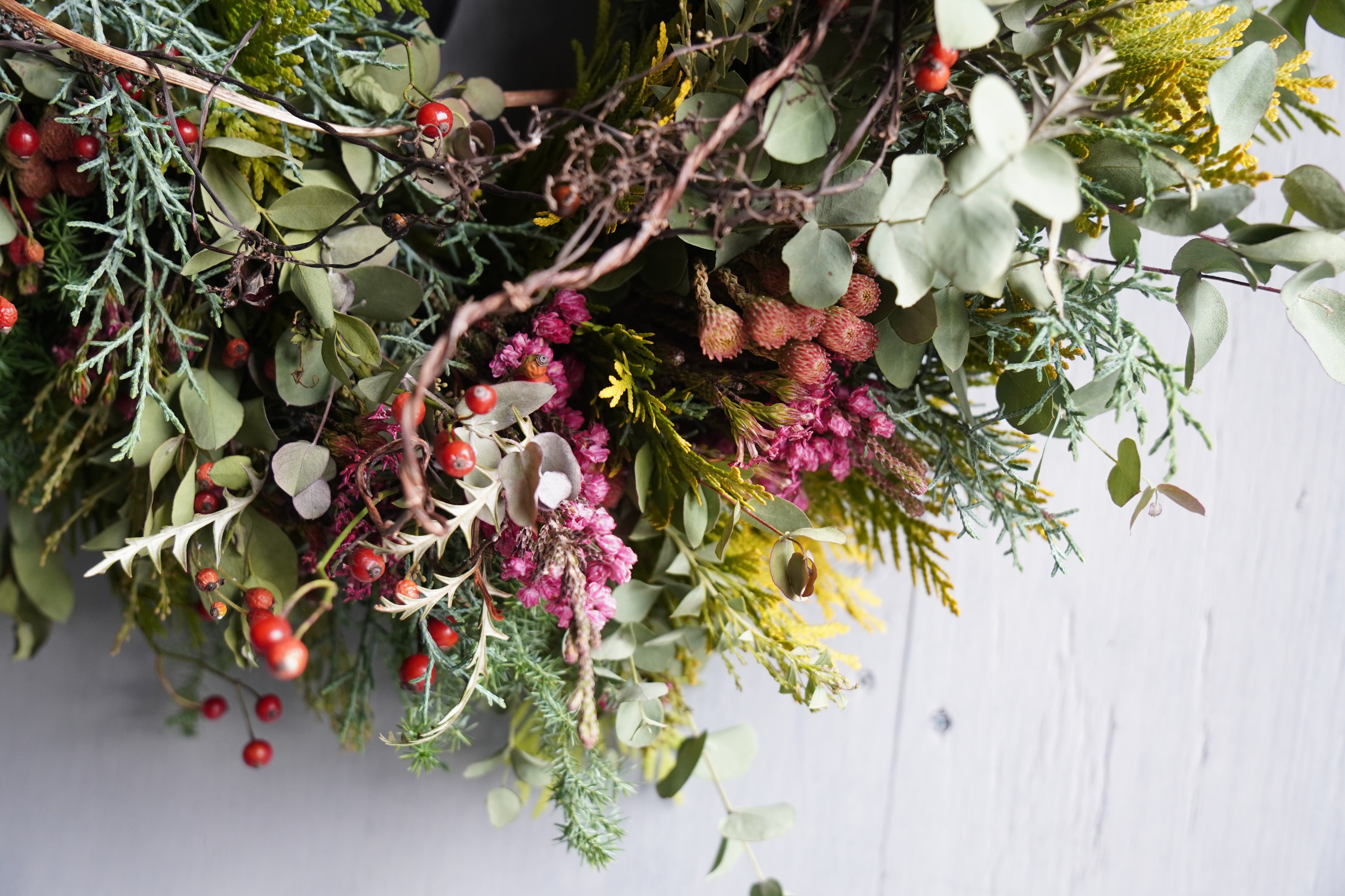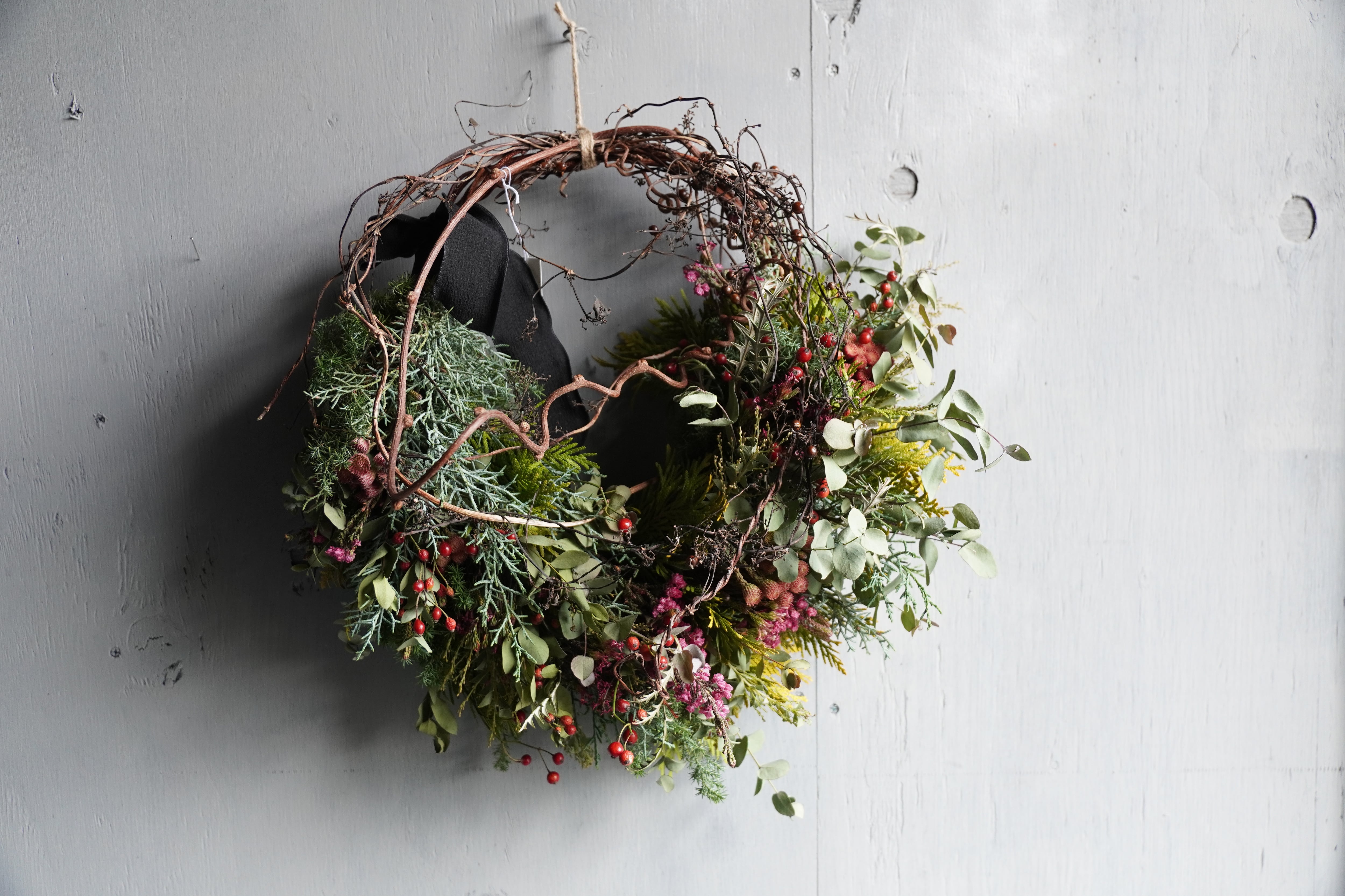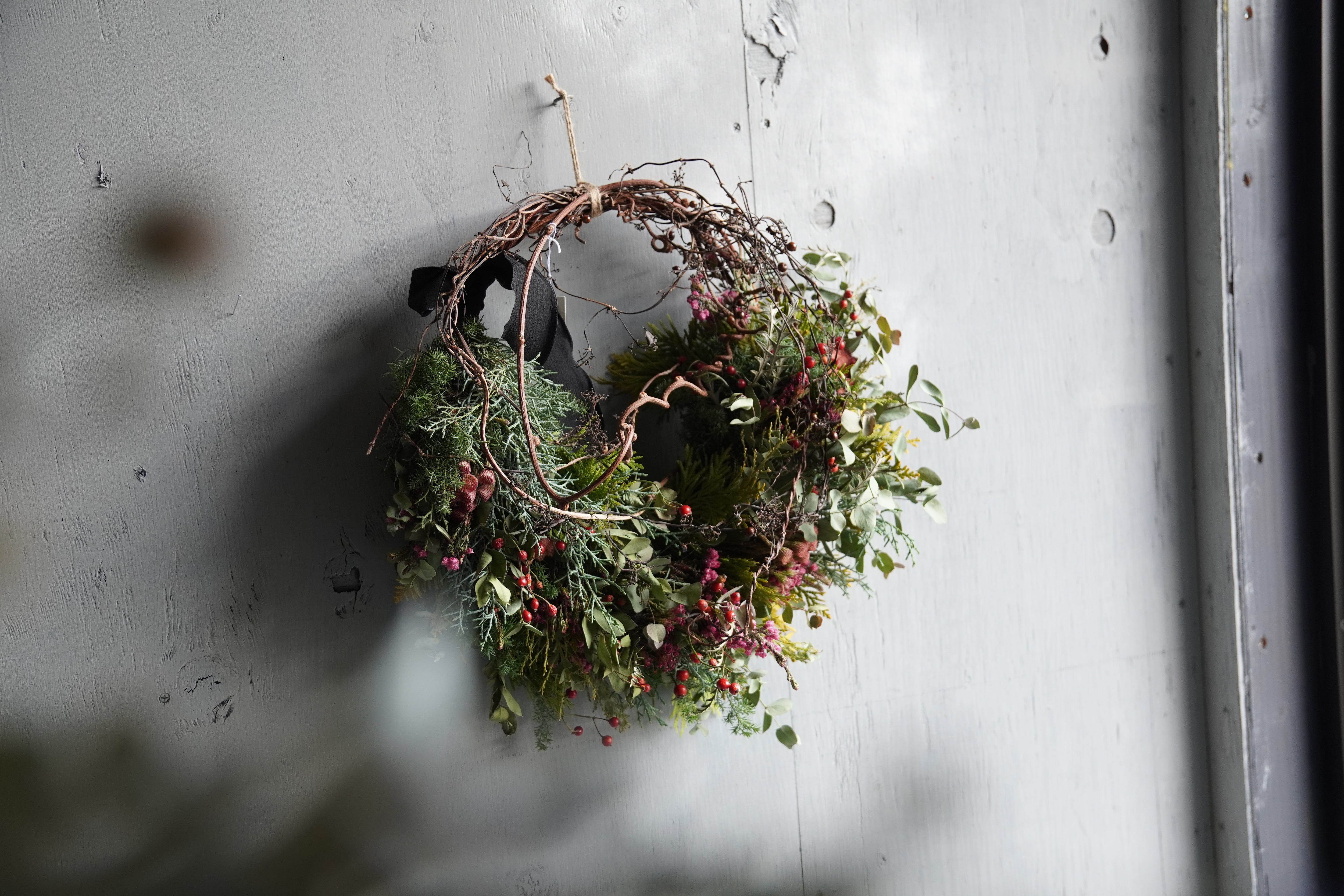 11/10〜11/14頃フレッシュ素材で制作した冬のリース。
