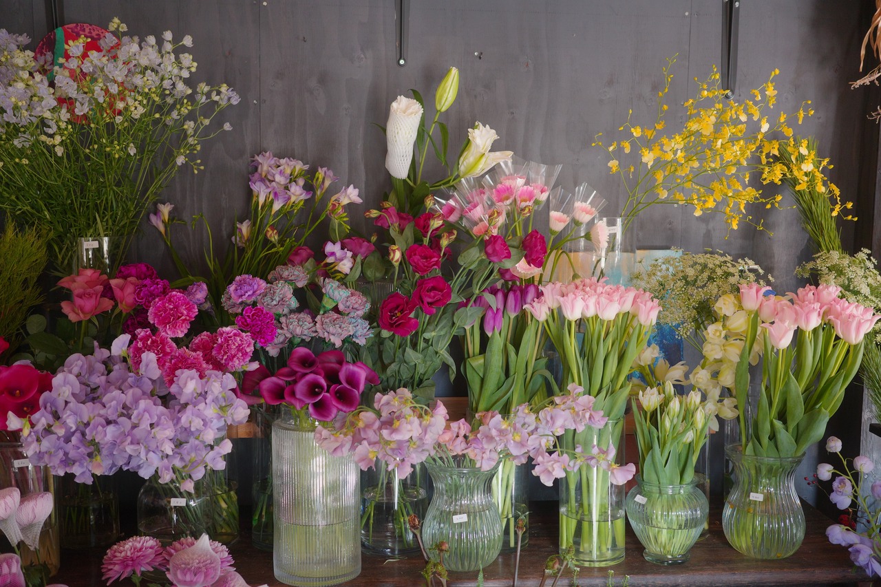 種類たくさんふんだんに詰め込んでブーケに束ねます。