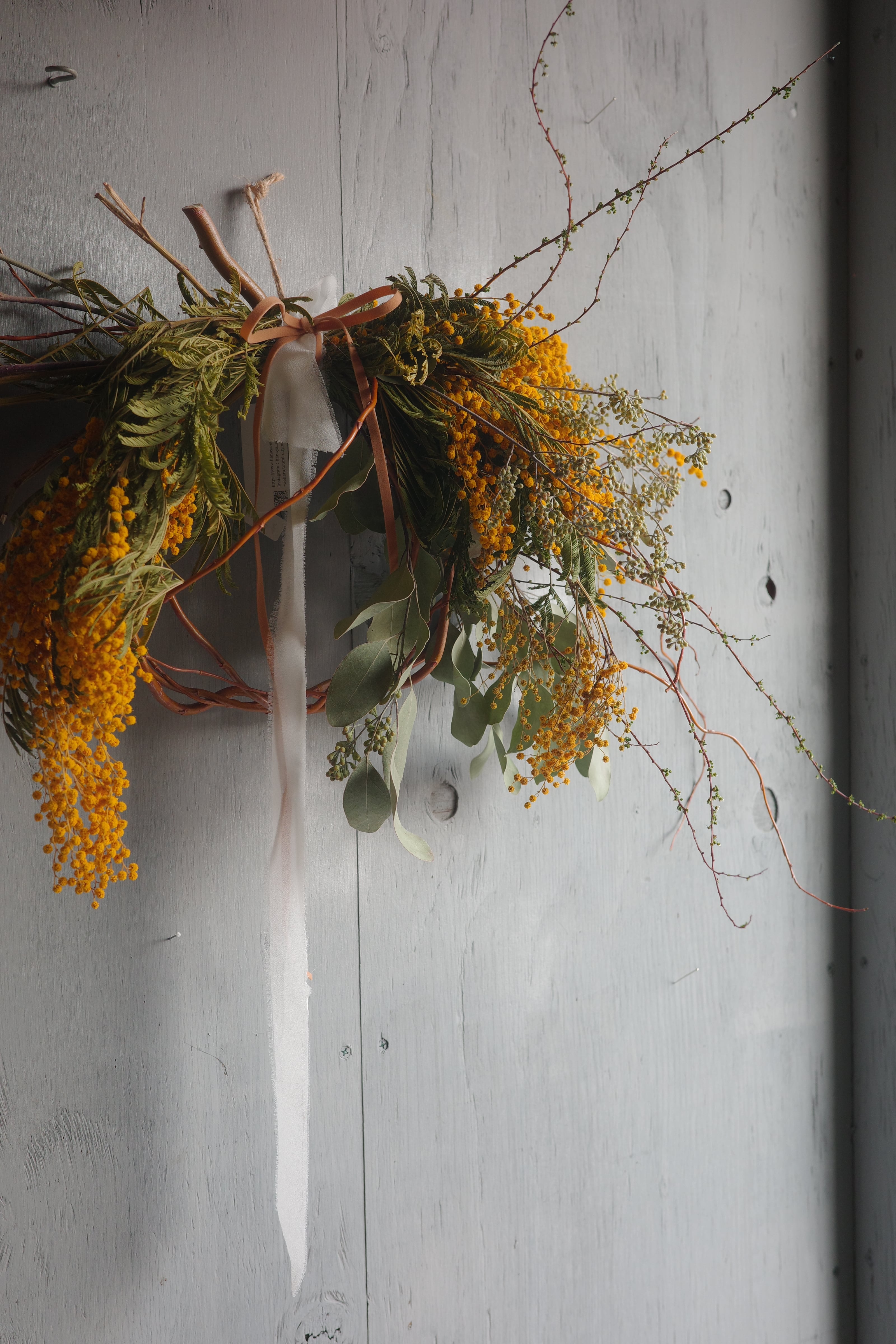 リースのようなミモザスワッグb