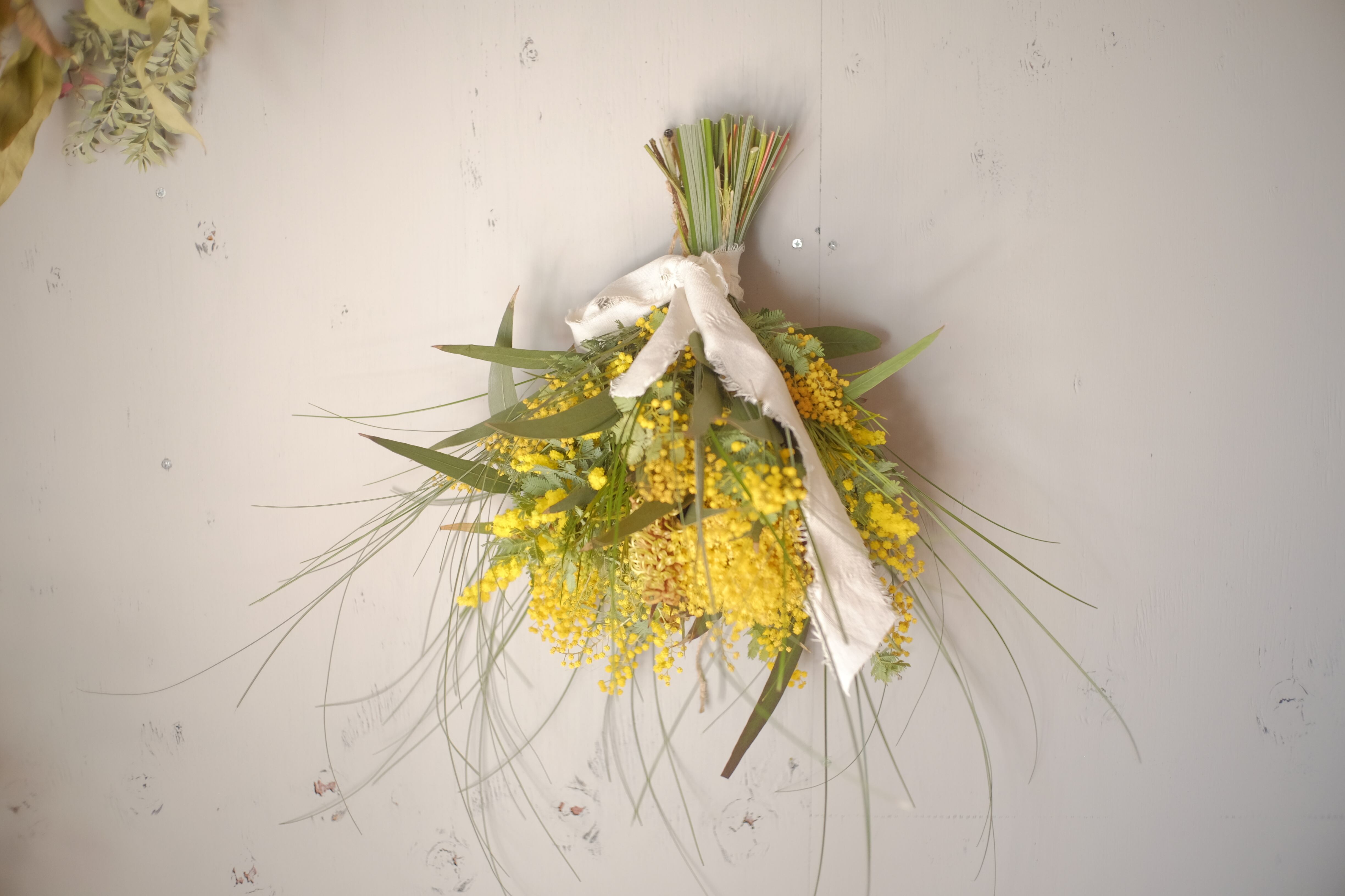 たっぷり咲いたミモザのブーケスワッグ