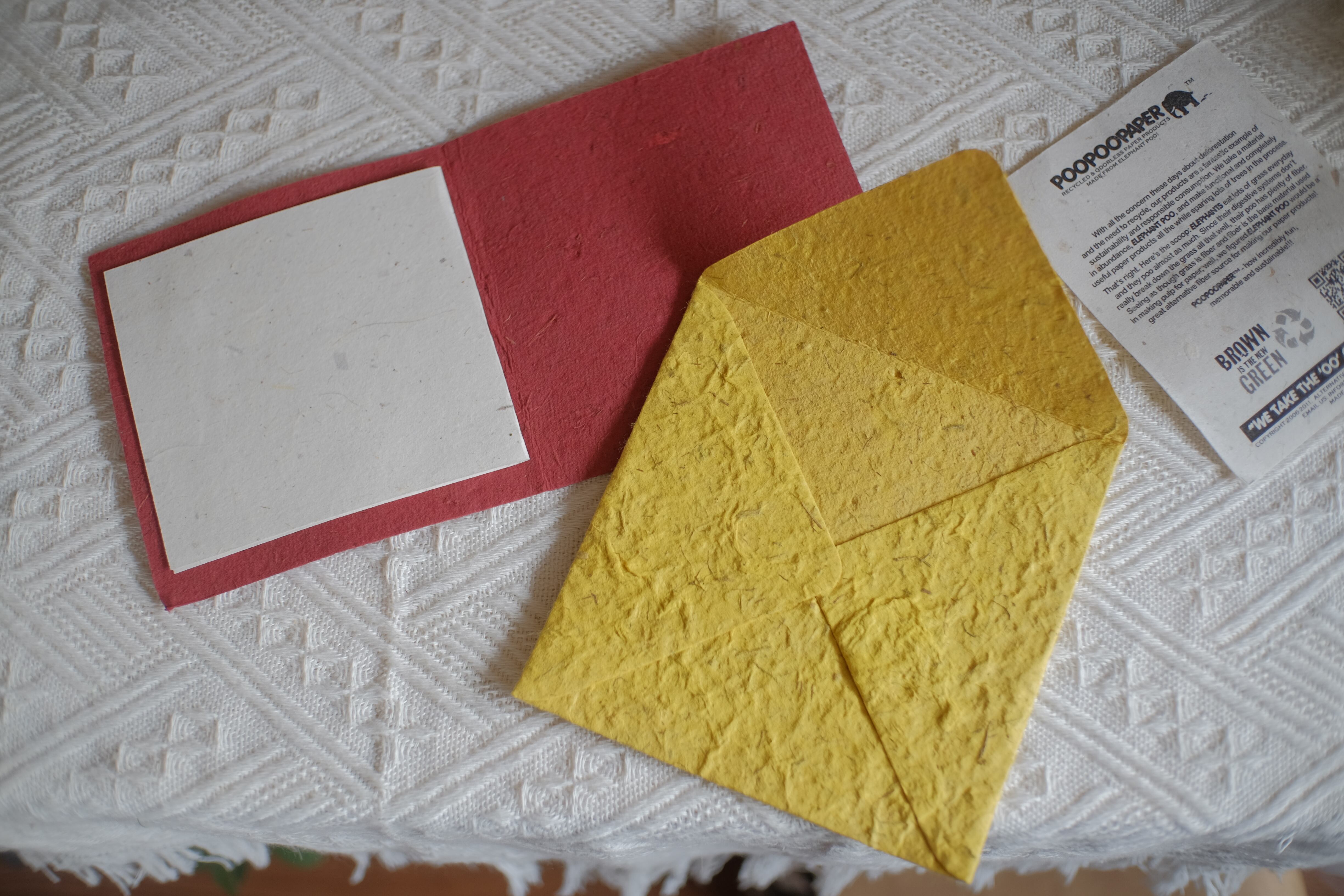 象のPOOPOOPAPERで作られており、サンクスカードや、誕生日カード、新しい赤ちゃんへのお祝いカードとしてなどに最適です。